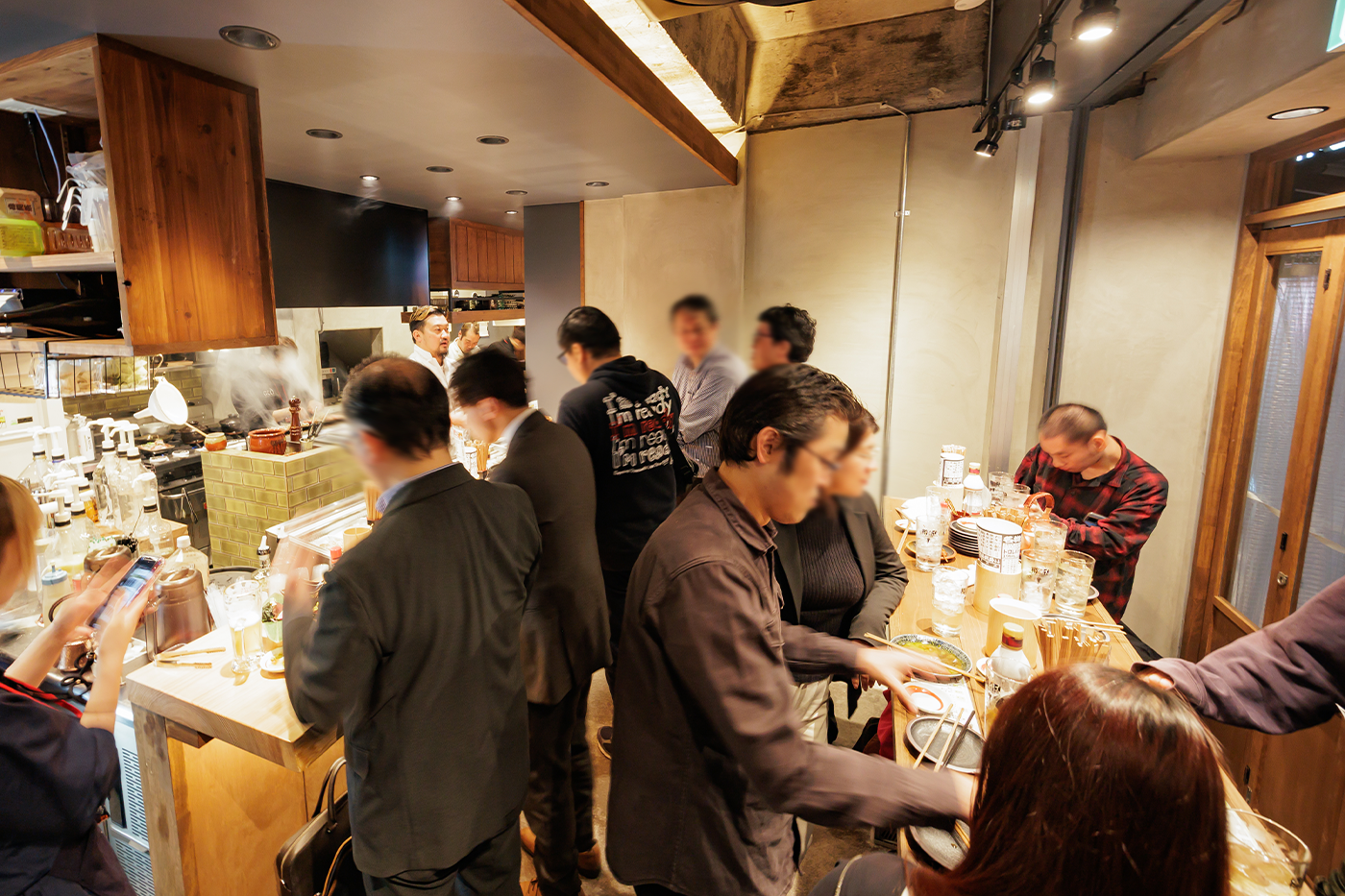 1階は立ち飲みとカウンター席を備えたカジュアルな雰囲気。