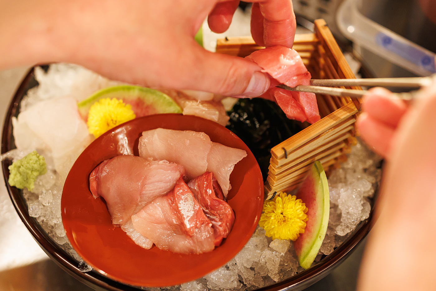 氷の上に豪快に盛り付けた鮮魚を思う存分味わってみて下さい!